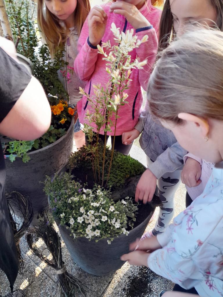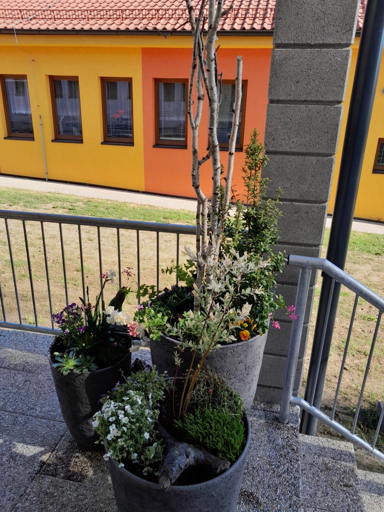 Projektový den - aranžování truhlíků před vstupem do školy